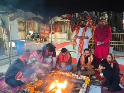 मां चिंतपूर्णी दरबार में हवन डालते श्रद्धालु। स्रोत स्वयं