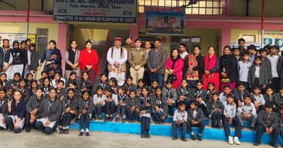 धर्मपुर में बच्चों के साथ थाना प्रभारी सुनील सांख्यान। स्रोत संस्थान