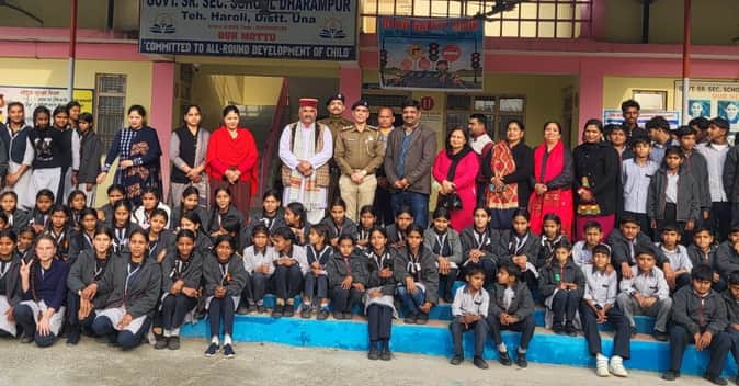 Una News: हरोली में थाना प्रभारी ने स्कूली बच्चों को बताए यातायात नियम