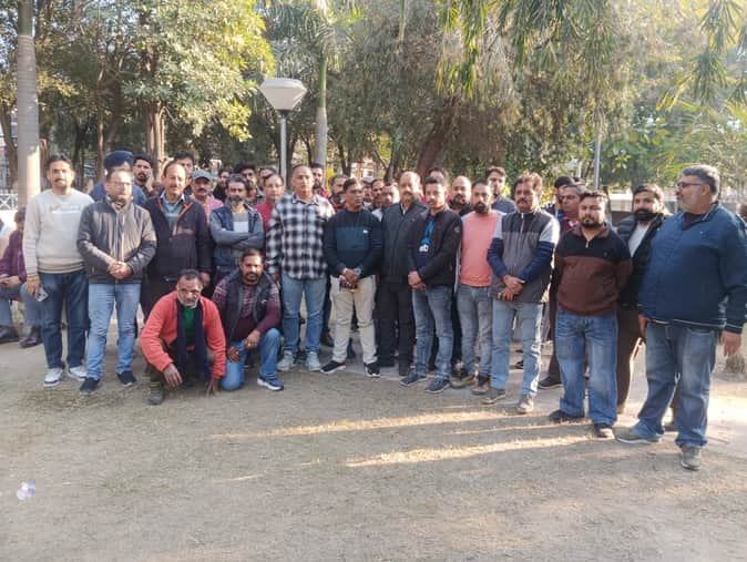 ऊना के एमसी पार्क में पार्किंग की दिक्कत को लेकर जमा दुकानदार।संवाद