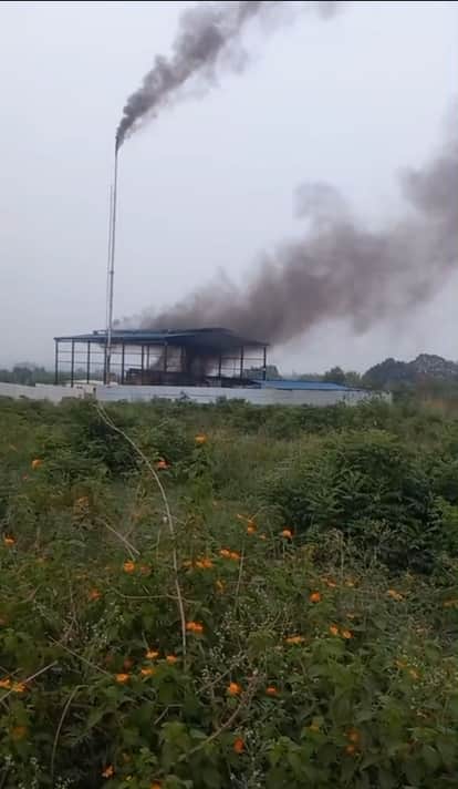 ग्राम पंचायत बाथू में टायर रीसायकल फैक्ट्री से निकलता धूआं।संवाद