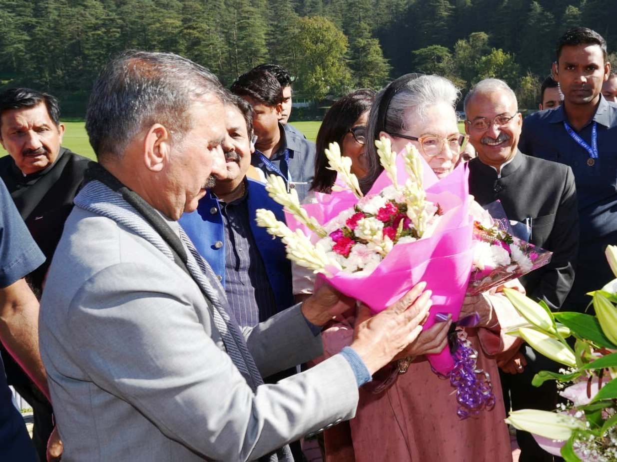 कांग्रेस की पूर्व राष्ट्रीय अध्यक्ष सोनिया गांधी रविवार को शिमला पहुंच गई हैं। शिमला पहुंचने पर मुख्यमंत्री सुखविंद्र सिंह सुक्खू व उपमुख्यमंत्री मुकेश अग्निहोत्री ने उनका पुष्प गुच्छ देकर स्वागत किया। सोनिया के शिमला आने के चलते सुरक्षा के पुख्ता बंदोबस्त किए गए हैं।
