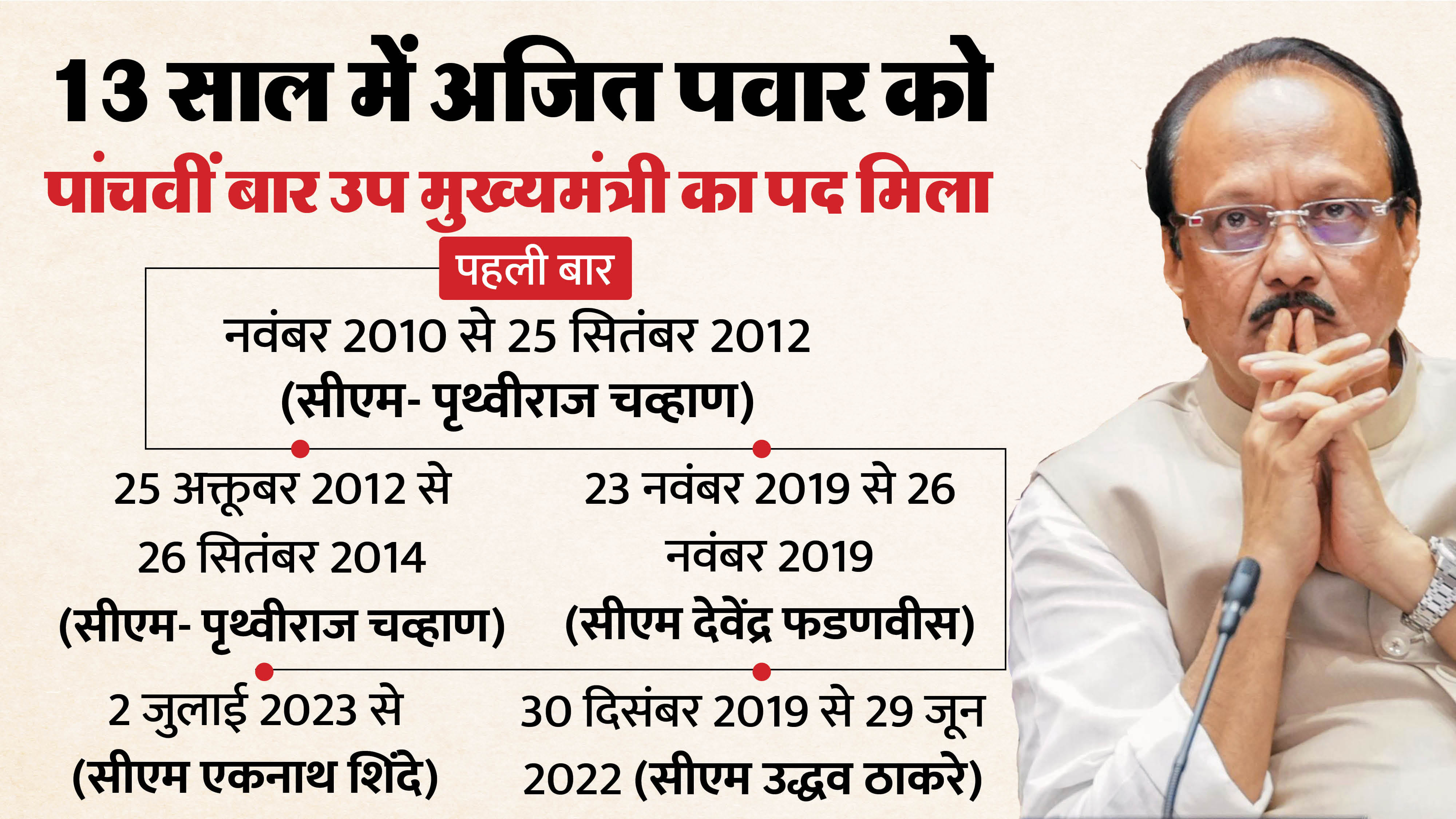 महाराष्ट्र की राजनीति के दिग्गज नेता अजित पवार को पिछले 13 वर्षों में छठवीं बार उप मुख्यमंत्री बनने का अवसर मिला। वह महाराष्ट्र के सबसे लंबे समय तक गैर-लगातार उप मुख्यमंत्री रहने वाले नेता भी रहे।
