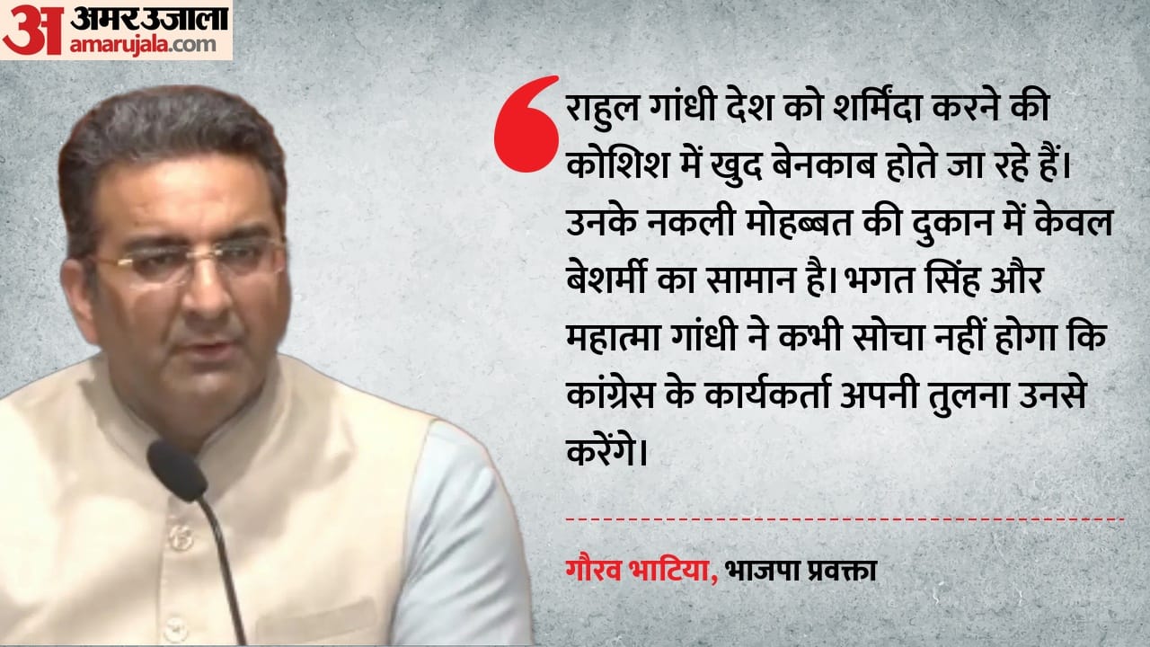 गौरव भाटिया ने कहा कि राहुल गांधी देश को शर्मिंदा करने की कोशिश में खुद बेनकाब होते जा रहे हैं। उन्होंने तंज कसते हुए कहा कि राहुल गांधी की नकली मोहब्बत की दुकान में केवल बेशर्मी का सामान है। उन्होंने कहा कि न तो भगत सिंह और न ही महात्मा गांधी ने कभी सोचा होगा कि कांग्रेस के कार्यकर्ता अपनी तुलना उनसे करेंगे।