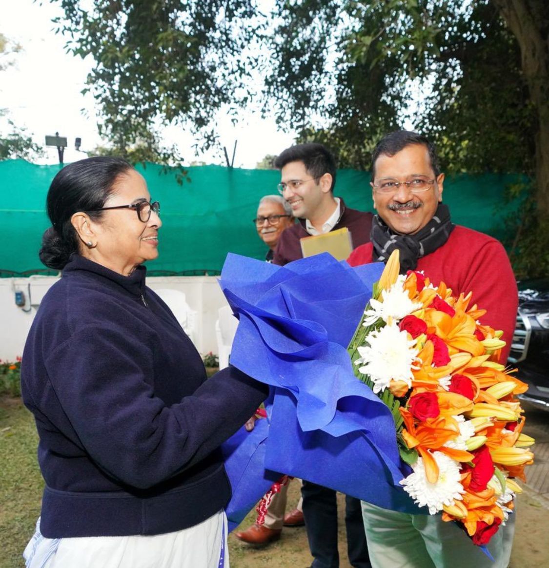 आप संयोजक अरविंद केजरीवाल ने सोशल मीडिया पोस्ट में कहा कि ममता बनर्जी के साथ शिष्टाचार भेंट में देश के राजनीतिक मुद्दों पर चर्चा हुई। उन्होंने सोशल मीडिया पर शिवसेना नेताओं के साथ बैठक की तस्वीरें साझा करते हुए लिखा, उन्हें अपने आवास पर इन नेताओं की मेजबानी करने का सौभाग्य मिला है।