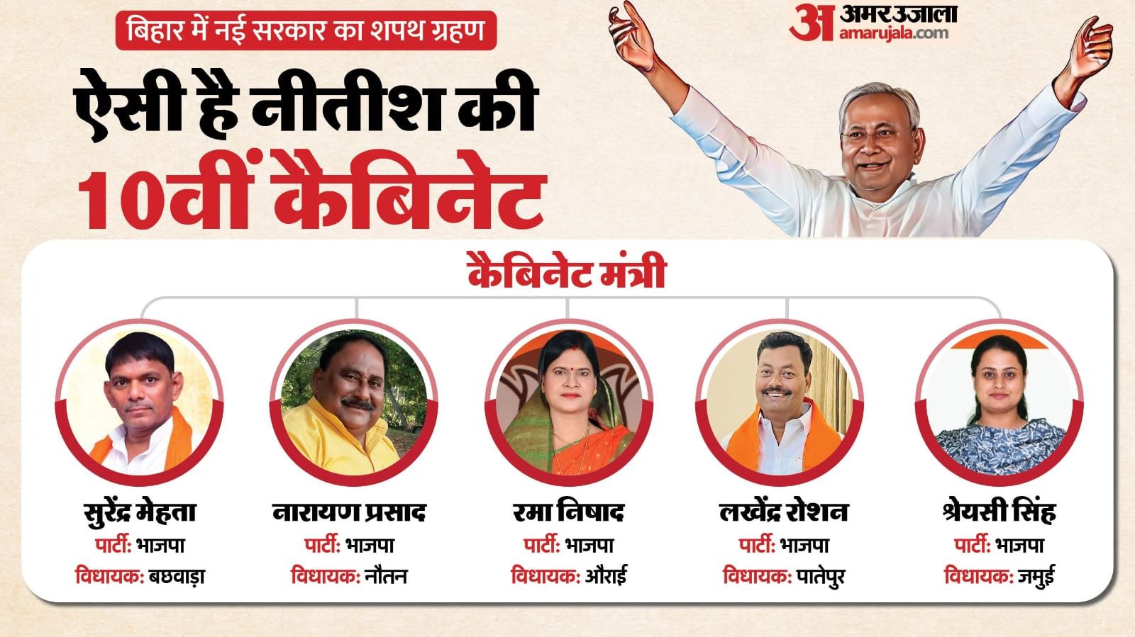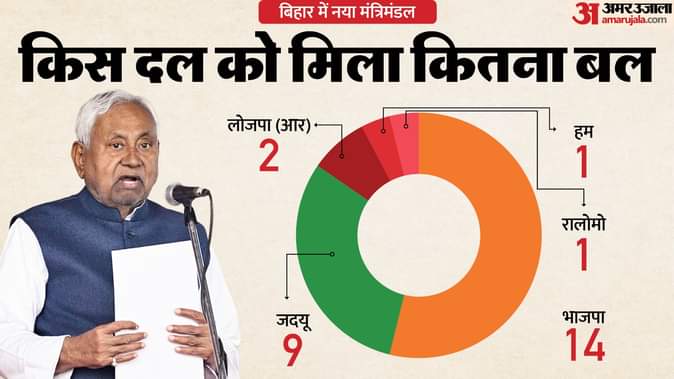 Bihar Oath Summary: बिहार की नई सरकार में भाजपा के 14 मंत्री; जदयू, चिराग, मांझी को क्या मिला? देखें ग्राफिक्स