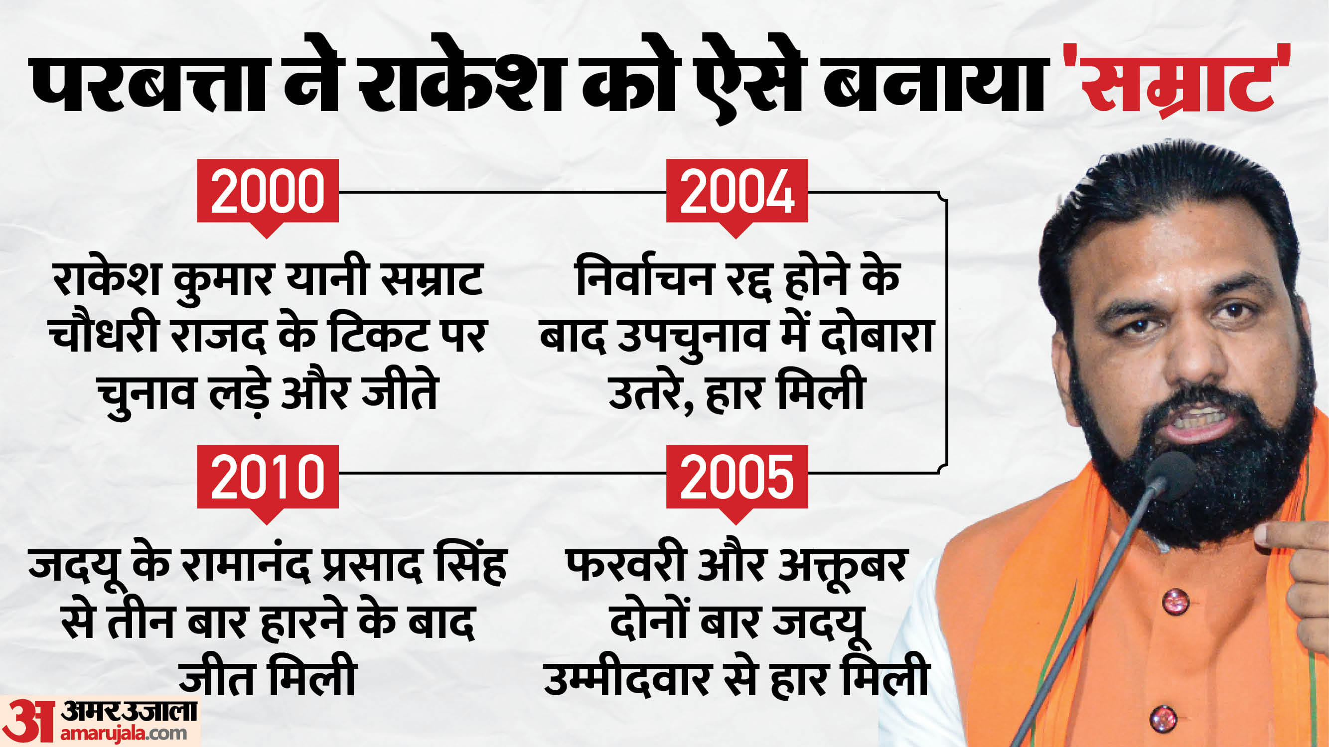 2004 में राकेश कुमार का निर्वाचन रद्द होने के बाद परबत्ता सीट पर उपचुनाव कराए गए। उप चुनाव में जदयू  के रामानंद प्रसाद सिंह ने राजद के राकेश कुमार यानी सम्राट चौधरी को 11,134 वोट से हरा दिया।