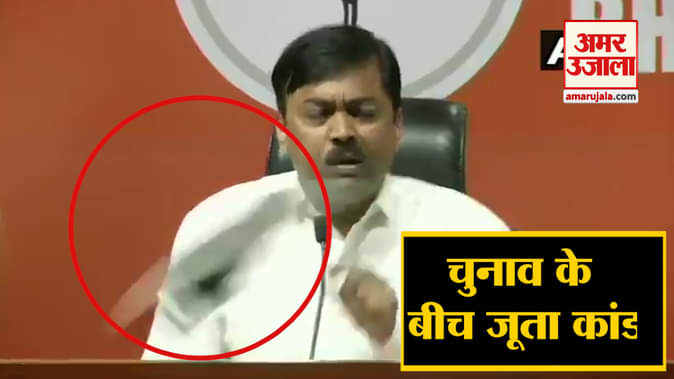 भाजपा की प्रेस कॉन्फ्रेंस में भाजपा प्रवक्ता पर एक शख्स ने जूता फेंक दिया। यहां देखिए पूरा वीडियो।