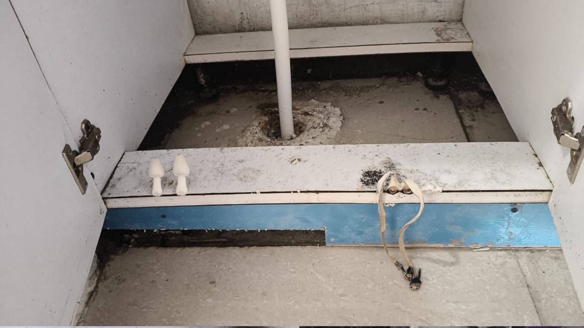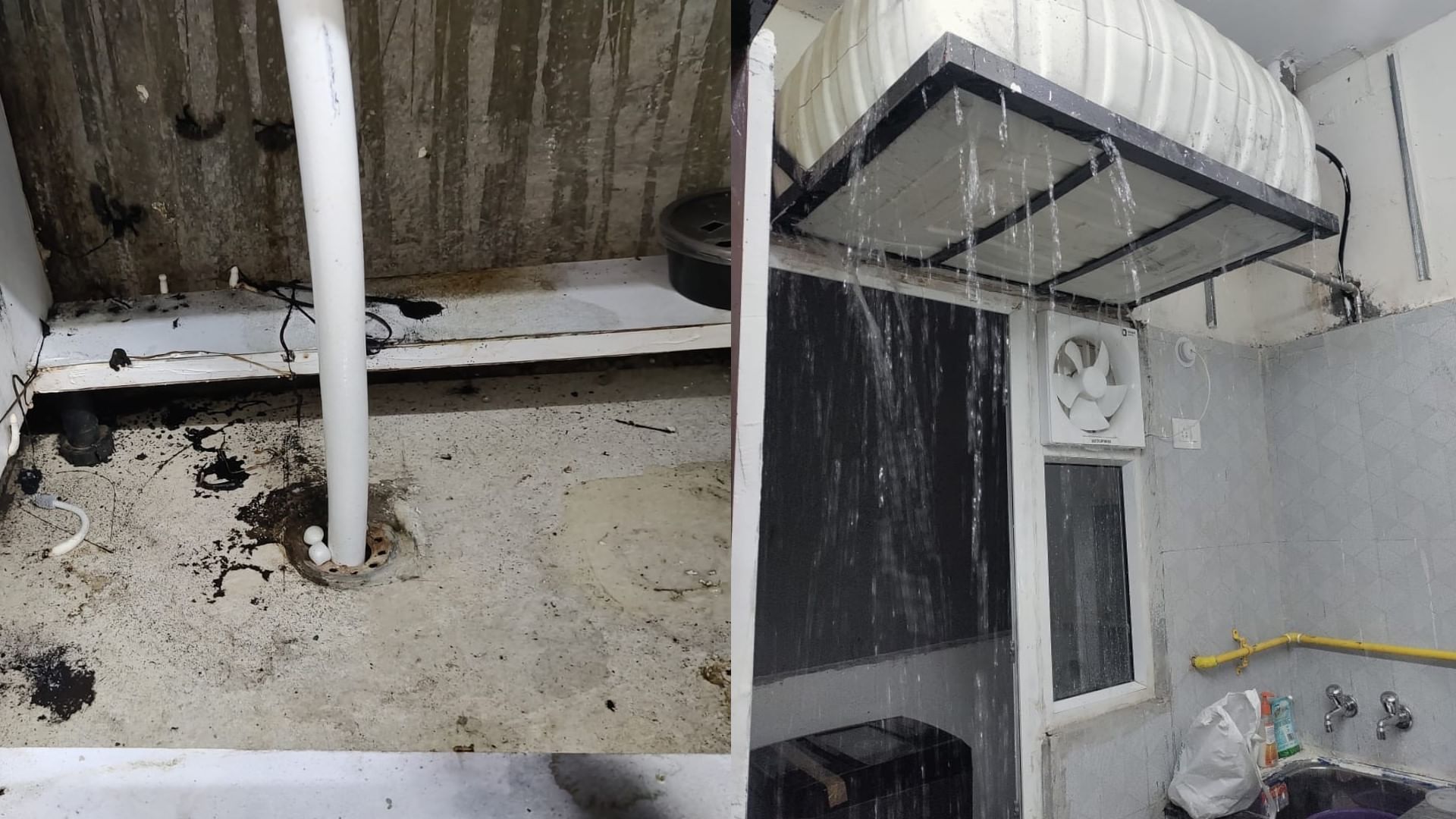 दीवारों में रिसाव और फफूंदी देखने को मिलती है। सीवरेज ओवरफ्लो हो गए। पाइपों की फिटिंग ऐसी है कि उसके चारों तरफ इतना स्पेस छोड़ा गया है कि उसमें कोई भी रेंगने वाला जीव छिपकर बैठ जाए।