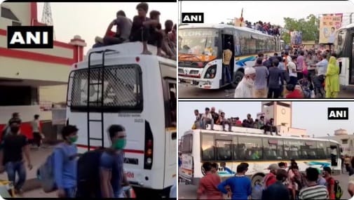 बिहार: लॉकडाउन-चार 31 मई तक जारी है, लेकिन प्रवासी मजदूर किस तरह इन बसों में यात्रा कर रहे हैं। तस्वीर मुजफ्फरपुर रेलवे स्टेशन के बाहर से सीतामढ़ी जाने वाले बस की है। सोशल डिस्टेंसिंग की धज्जियां उड़ा रहे लोग।