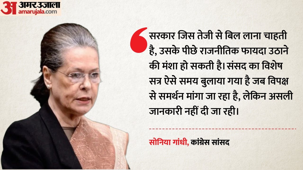 कांग्रेस की वरिष्ठ नेता सोनिया गांधी ने केंद्र सरकार पर बड़ा आरोप लगाते हुए कहा है कि संसद के विशेष सत्र में असली मुद्दा महिला आरक्षण नहीं, बल्कि परिसीमन है। उन्होंने चेतावनी दी कि जिस तरह का परिसीमन प्रस्ताव सामने आ रहा है, वह 'बहुत खतरनाक' है और यह संविधान पर हमला जैसा हो सकता है। उन्होंने एक अखबार में लिखे अपने लेख में कहा कि सरकार जिस तेजी से बिल लाना चाहती है, उसके पीछे राजनीतिक फायदा उठाने की मंशा हो सकती है। उनका कहना है कि संसद का यह विशेष सत्र ऐसे समय बुलाया गया है जब नरेंद्र मोदी विपक्ष से समर्थन मांग रहे हैं, लेकिन असली जानकारी साझा नहीं की जा रही।