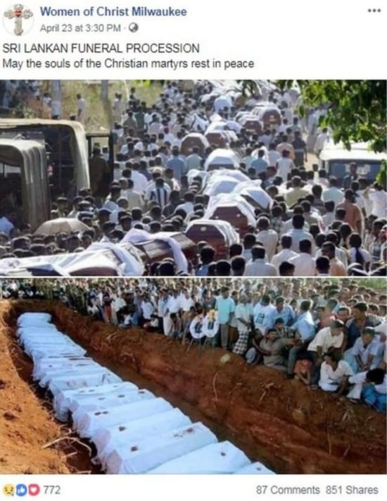 इन ताबूतों के पास भारी भीड़ भी नजर आ रही है। सोशल मीडिया पर कई लोग इन तस्वीरों को शेयर करते हुए दावा कर रहे हैं कि ये श्रीलंका हमले के बाद की हैं। लेकिन हमारी पड़ताल में सामने आया है कि ये तस्वीरें श्रीलंका हमले के बाद नहीं हैं बल्कि 13 साल पुरानी हैं।