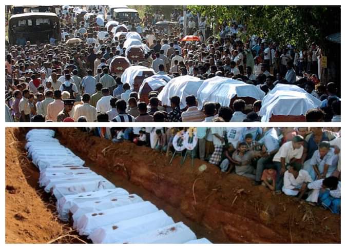 इसी बीच सोशल मीडिया पर कुछ तस्वीरें खूब वायरल हो रही हैं, जिन्हें श्रीलंका के मृतकों से जोड़ा जा रहा है। लोग ताबूतों की कुछ तस्वीरों को लोग खूूब शेयर कर रहे हैं। पहली तस्वीर में जमीन पर ताबूत बिछे हुए हैं और दूसरी में लोगों ने हाथों में ताबूतों को उठाया हुआ है।