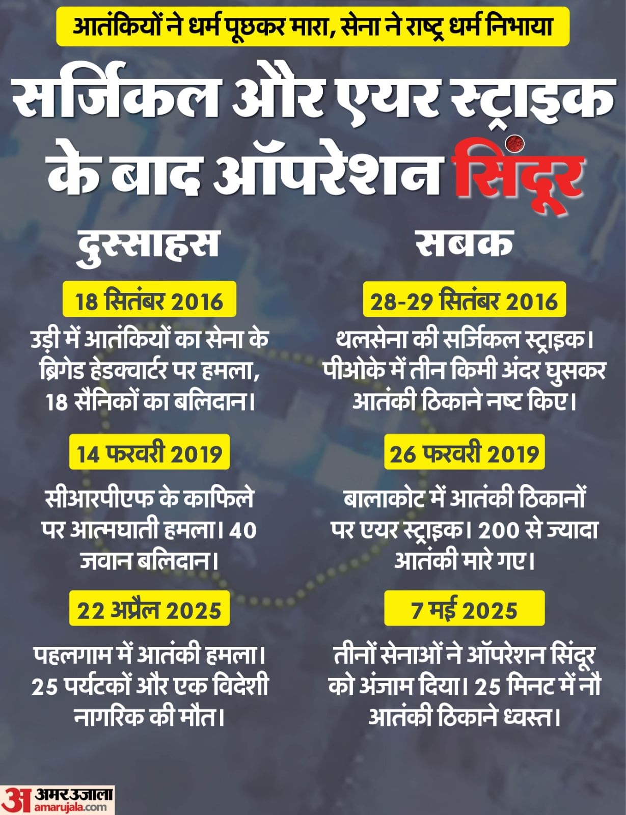 Operation Sindoor: पहले सर्जिकल फिर एयर स्ट्राइक, अब ऑपरेशन सिंदूर; भारत के तीन प्रहारों से दहल उठा पाकिस्तान