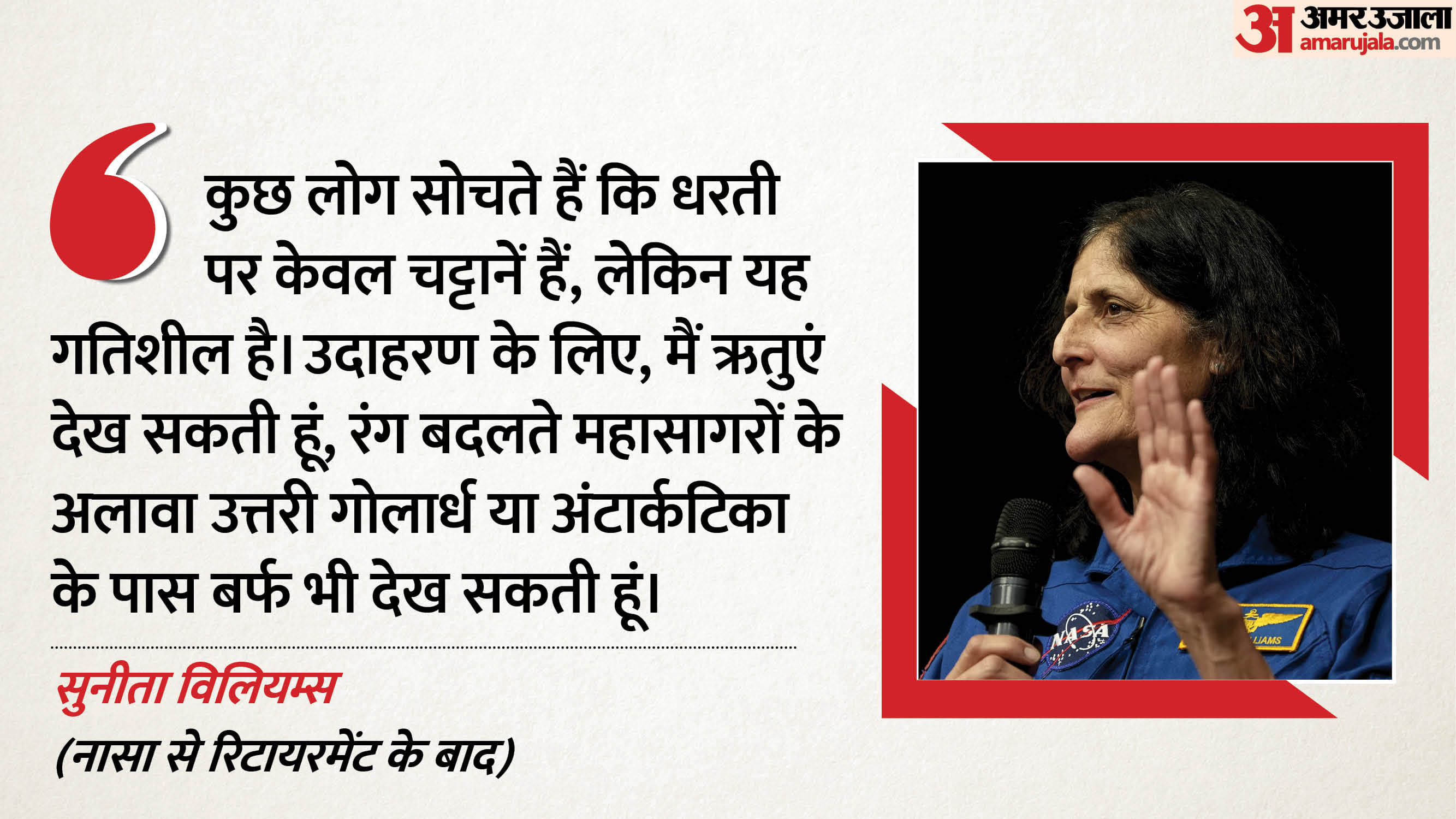 भारतीय मूल की अमेरिकी अंतरिक्ष यात्री सुनीता विलियम्स 27 साल की गौरवशाली सेवा के बाद नासा से रिटायर हो गईं। उन्होंने दिल्ली के एक कार्यक्रम में बताया कि अंतरिक्ष से भारत कैसे दिखता है?
