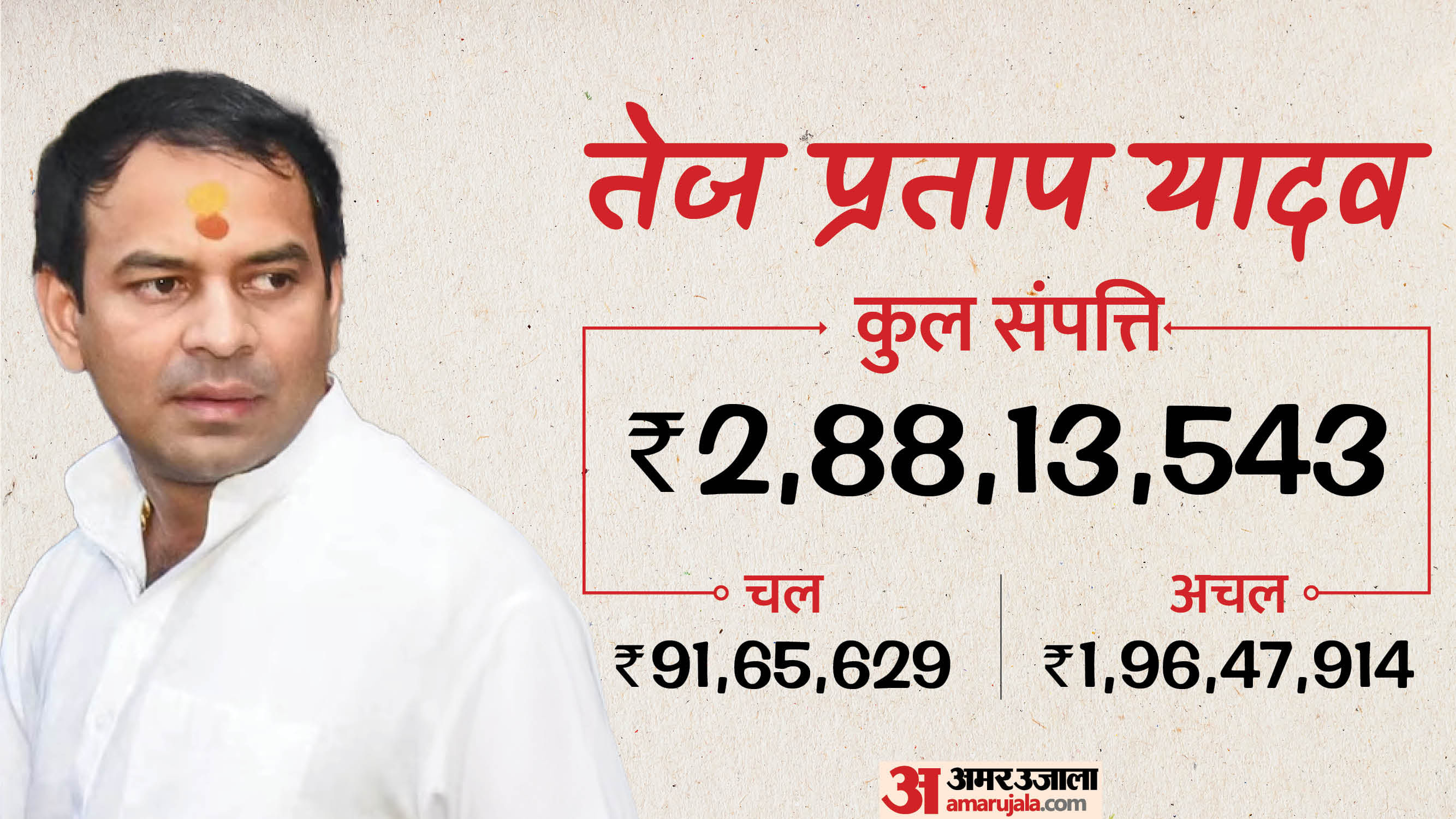 लालू यादव के बड़े बेटे तेज प्रताप बिहार सरकार में मंत्री भी रह चुके हैं। 2025 के बिहार चुनाव में परिवार और पार्टी से अलग होने के बाद उन्होंने खुद का दल जनशक्ति जनता दल बनाया। इसी पार्टी के टिकट पर महुआ सीट से चुनाव लड़ा, लेकिन हार गए। तेज प्रताप ने अपने चुनावी हलफनामे में जो जानकारी दी है उसके अनुसार उनकी कुल संपत्ति 2,88,13,543 रुपये की है। इसमें 91,65,628 रुपये की चल और 1,96,47,914 रुपये की अचल संपत्ति है।