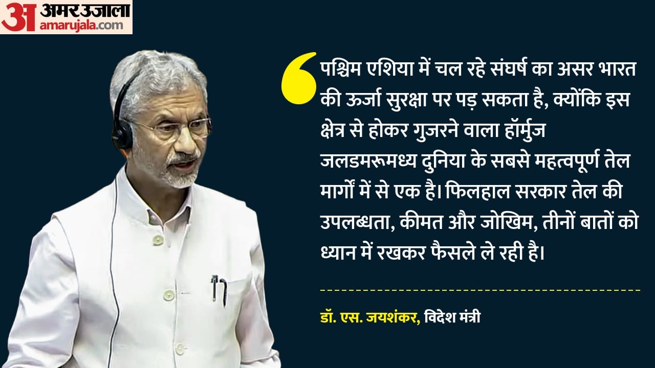 संसद में बोलते हुए डॉ. जयशंकर ने यह भी कहा कि पश्चिम एशिया में चल रहे संघर्ष का असर भारत की ऊर्जा सुरक्षा पर पड़ सकता है, क्योंकि इस क्षेत्र से होकर गुजरने वाला हॉर्मुज जलडमरूमध्य दुनिया के सबसे महत्वपूर्ण तेल मार्गों में से एक है। उन्होंने भरोसा दिलाया कि सरकार तेल की उपलब्धता, कीमत और जोखिम, तीनों बातों को ध्यान में रखकर फैसले ले रही है और भारतीय उपभोक्ताओं के हित को सबसे ऊपर रखा जाएगा।