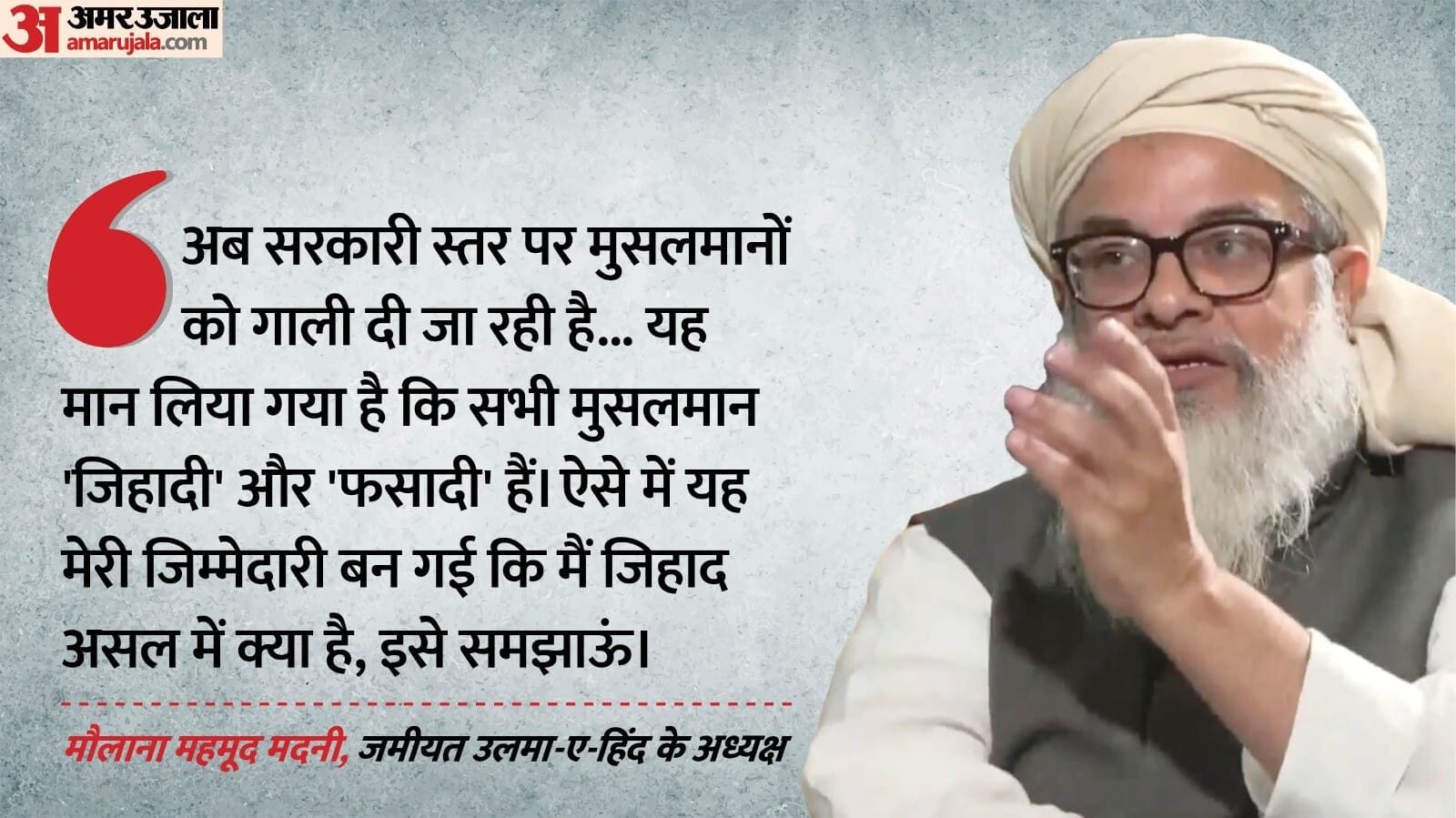 मौलाना महमूद मदनी अपने बयानों को लेकर लगातार चर्चा में बने हुए हैं। जमीयत उलमा-ए-हिंद के प्रमुख मौलाना मदनी ने एक और इंटरव्यू में जिहाद और देश की राजनीति से जुड़े मसलों पर विस्तार से बात की है। देश की राजनीति, कानूनी एजेंसियों की कार्रवाई जैसे मुद्दों पर बात करते हुए मदनी ने अपनी बातों के समर्थन में कई दलीलें भी दीं। जानिए उन्होंने क्या कुछ कहा?