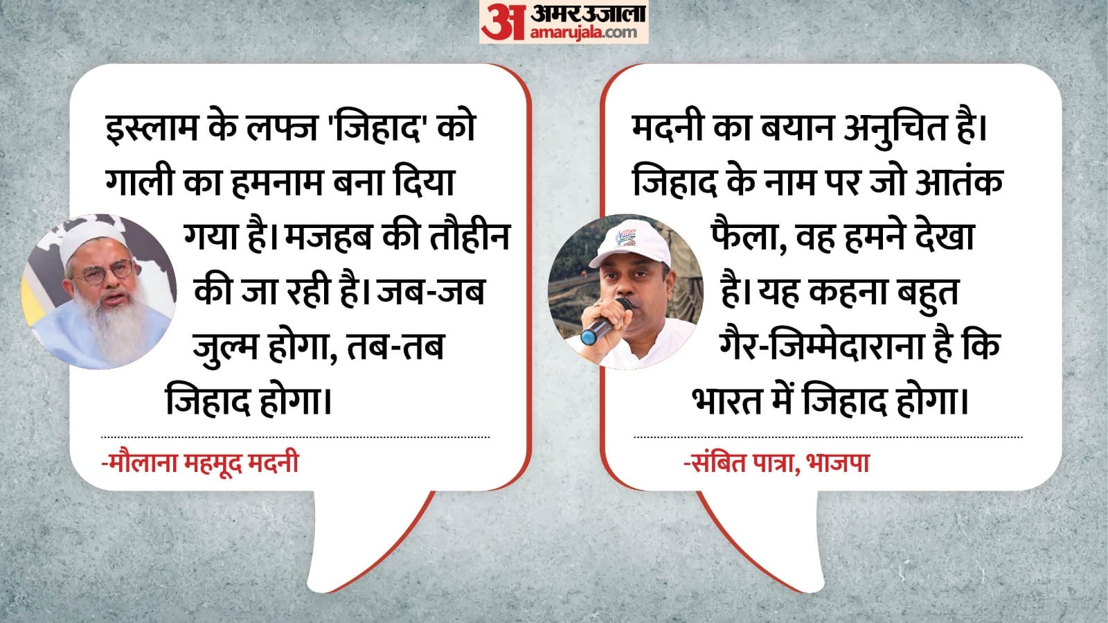 उन्होंने सत्ताधारी खेमे पर भी गंभीर आरोप लगाए। मदनी ने कहा, चाहे केंद्र हो या राज्य सरकार के मंत्रालय, सबने फैसला किया है कि अगर मुसलमानों से जुड़ी कोई भी नकारात्मक बात सामने आती है, तो उसे जिहाद कहा जाएगा। हालांकि, सच्चाई ये है कि जिहाद एक पवित्र शब्द है। हम जिहाद के असली अर्थ के लिए लड़ रहे हैं... लव जिहाद, जमीन जिहाद, 'ठूठ' जिहाद और वोट जिहाद मुसलमानों को गाली देने के लिए नए शब्दों के रूप में गढ़े गए हैं।