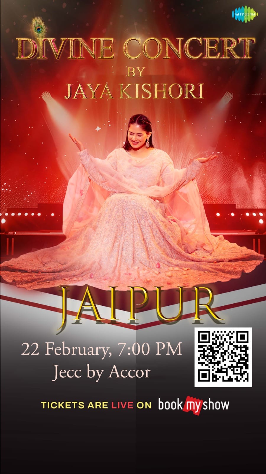 22 फरवरी को जया किशोरी राजस्थान की राजधानी जयपुर पधारेंगी। जयपुर में जया किशोरी का कार्यक्रम एकॉर ग्रुप के मशहूर केंद्र जेक (Jecc) में किया जाना है। डिवाइन कॉन्सर्ट यहां भी शाम सात बजे से ही आयोजित किया जाएगा। आगंतुकों को प्रवेश के लिए ऑनलाइन माध्यम से टिकट बुक करानी होगी।