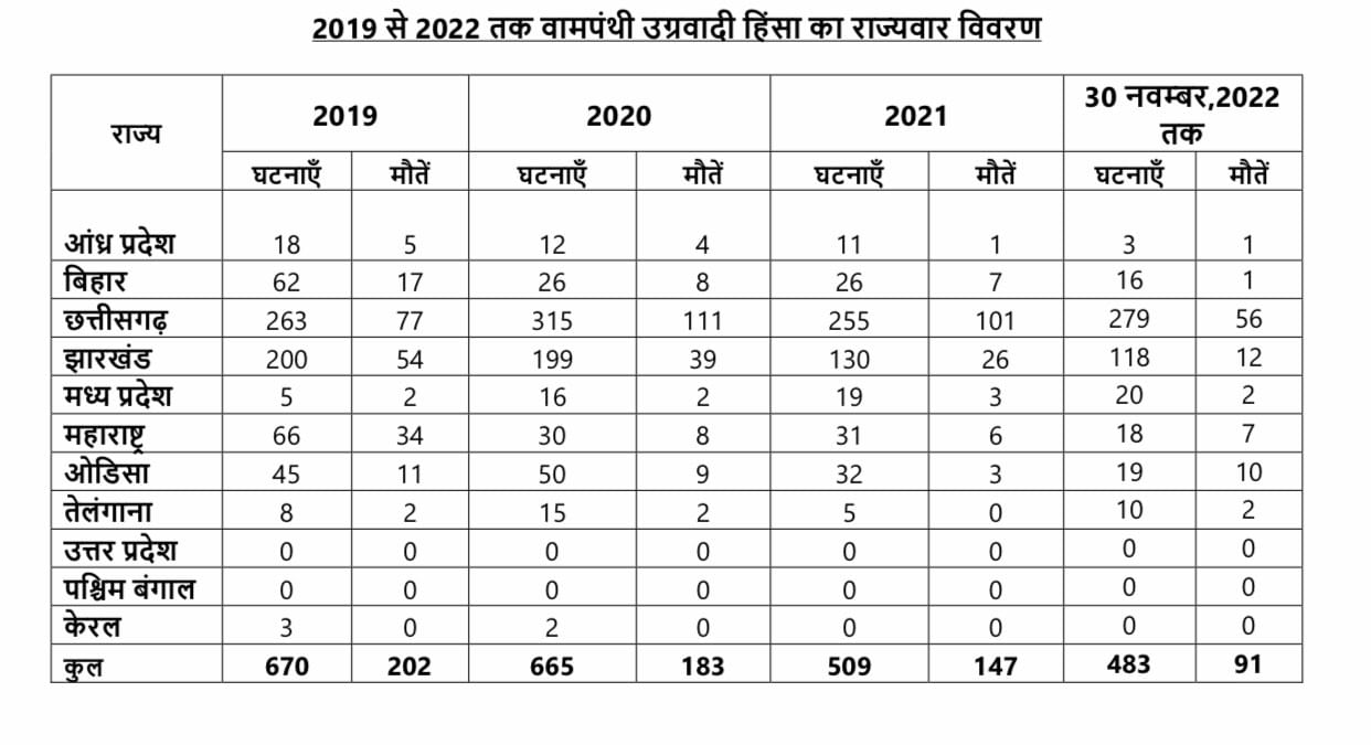 गत तीन साल में वामपंथी उग्रवाद पर हुई भारी चोट