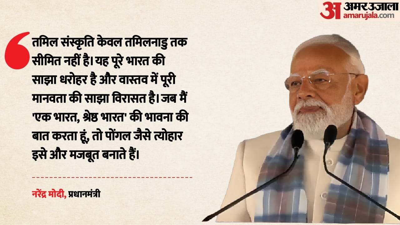 पीएम मोदी ने कहा कि दुनिया की लगभग सभी सभ्यताओं में फसलों से जुड़ा कोई न कोई पर्व मनाया जाता है। तमिल संस्कृति में किसान को जीवन का आधार माना गया है। तिरुक्कुरल में कृषि और किसानों पर विस्तार से लिखा गया है। हमारे किसान राष्ट्र निर्माण के मजबूत साथी हैं।