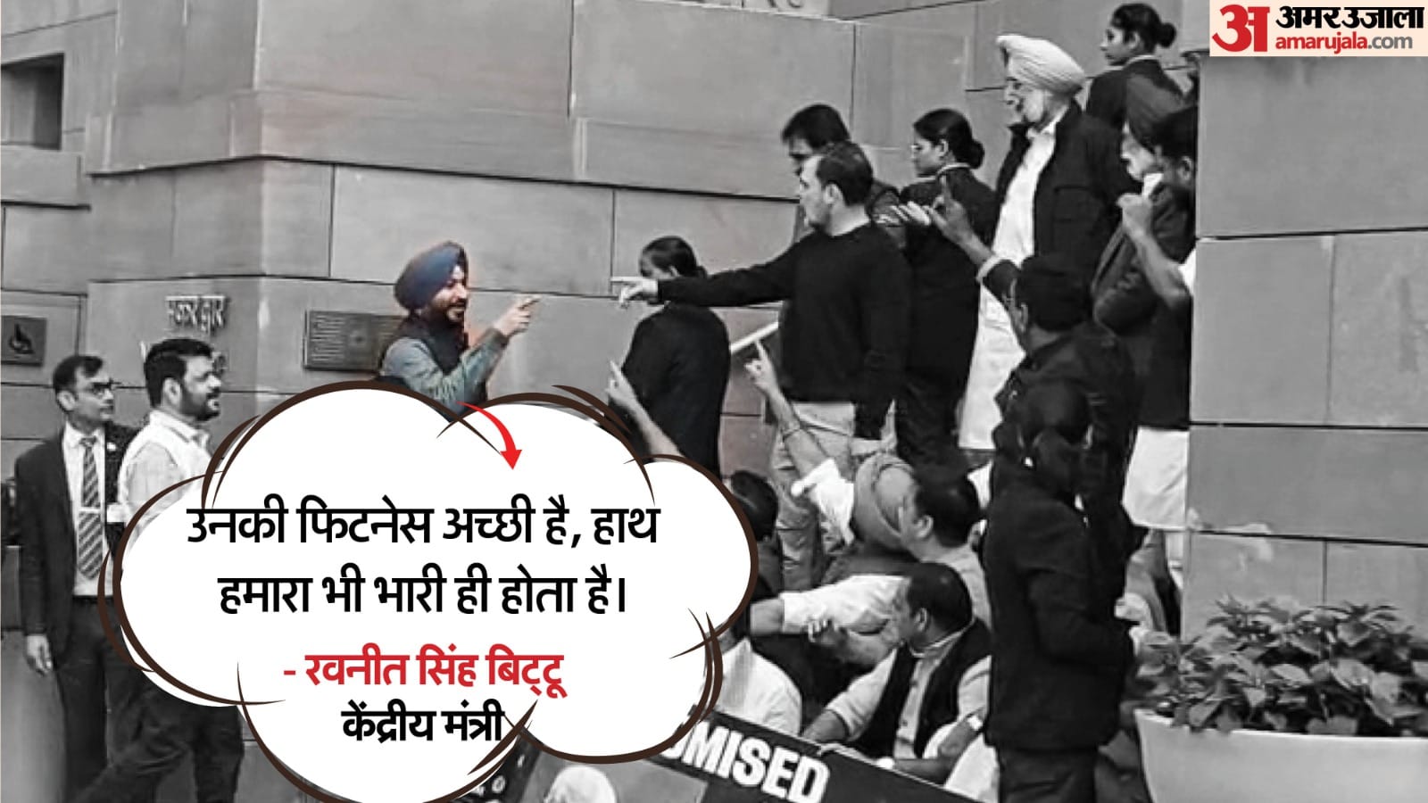 राहुल गांधी ने आगे बढ़कर रवनीत सिंह बिट्टू से हाथ मिलाने की भी कोशिश की। हालांकि, कांग्रेस सांसदों के सामने रवनीत सिंह बिट्टू ने राहुल गांधी से हाथ नहीं मिलाया। उन्होंने नेता प्रतिपक्ष की टिप्पणी पर पलटवार करते हुए उन्हें 'देश का दुश्मन' बताया। कड़ी प्रतिक्रिया देते हुए रवनीत बिट्टू संसद भवन के अंदर चले गए। उनके पीछे राहुल गांधी भी चले गए।