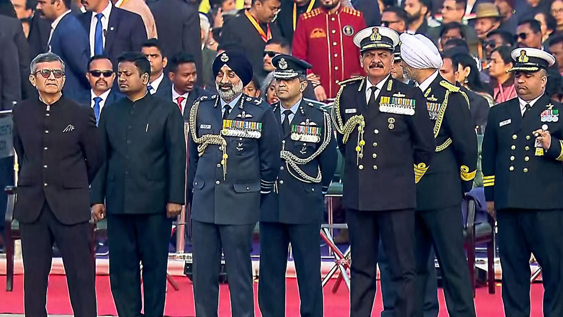 विजय चौक पर आयोजित बीटिंग रिट्रीट समारोह के साथ 77वें गणतंत्र दिवस का औपचारिक समापन हुआ। राष्ट्रपति द्रौपदी मुर्मू, उपराष्ट्रपति सीपी राधाकृष्णन और प्रधानमंत्री नरेंद्र मोदी की मौजूदगी में राष्ट्रीय ध्वज फहराया गया। थलसेना, नौसेना और वायुसेना के बैंडों ने देशभक्ति संगीत प्रस्तुत किया।