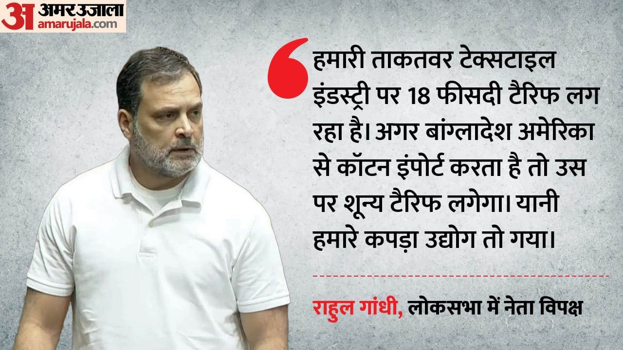 राहुल गांधी ने आगे कहा कि हमारी ताकतवर टेक्सटाइल इंडस्ट्री पर 18 फीसदी टैरिफ लग रहा है। अगर बांग्लादेश अमेरिका से कॉटन इंपोर्ट करता है तो उस पर शून्य टैरिफ लगेगा। यानी हमारे कपड़ा उद्योग तो गया। अब अमेरिका फैसला करता है कि हम किससे तेल खरीदेंगे। रूस और ईरान किससे खरीदेंगे, यह सब फैसले अमेरिका करता है, हमारे प्रधानमंत्री नहीं करते।