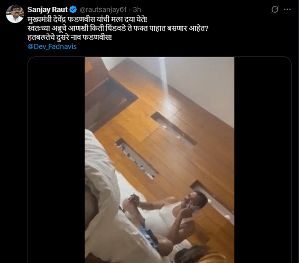 बता दें कि, शिवसेना (उद्धव बालासाहेब ठाकरे) के सांसद संजय राउत ने यह वीडियो सोशल मीडिया पर पोस्ट किया और केंद्रीय गृहमंत्री से इस पर ध्यान देने की मांग की। उन्होंने एक्स पर लिखा, 'मुख्यमंत्री देवेंद्र फडणवीस पर दया आती है! उनकी साख बार-बार तार-तार हो रही है, और वे बस चुपचाप देख रहे हैं। मजबूरी का दूसरा नाम है- फडणवीस!'