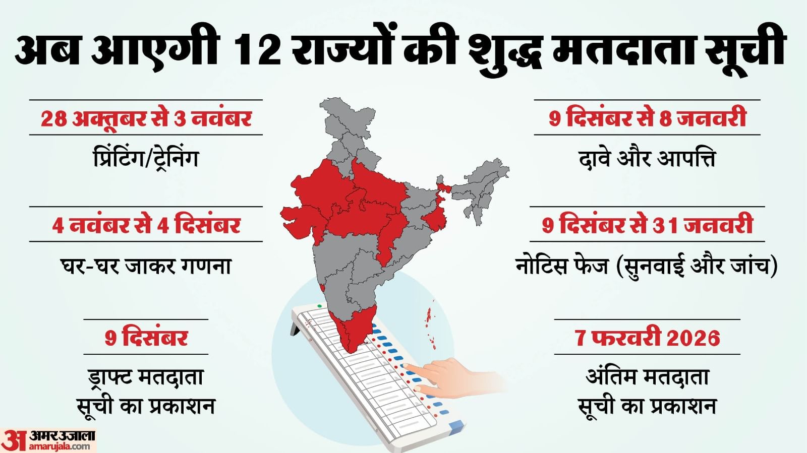 देशव्यापी विशेष गहन पुनरीक्षण के दूसरे चरण के पूरे होने के बाद इन 12 राज्यों में नई मतदाता सूची 7 फरवरी 2026 को जारी की जाएगी। चुनाव आयोग एसआईआर लागू करने की रूपरेखा तय करने के लिए राज्य के मुख्य निर्वाचन अधिकारियों (सीईओ) के साथ पहले ही दो बैठकें कर चुका है। कई सीईओ ने अपनी पिछली एसआईआर के बाद की मतदाता सूचियां अपनी वेबसाइटों पर डाल दी हैं।