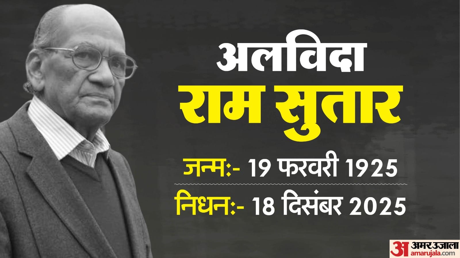 अनिल सुतार ने गुरुवार को प्रेस को जारी एक बयान में कहा कि गहरे दुख के साथ हम आपको सूचित करते हैं कि मेरे पिता श्री राम वनजी सुतार का 17 दिसंबर की मध्यरात्रि को हमारे निवास पर निधन हो गया।