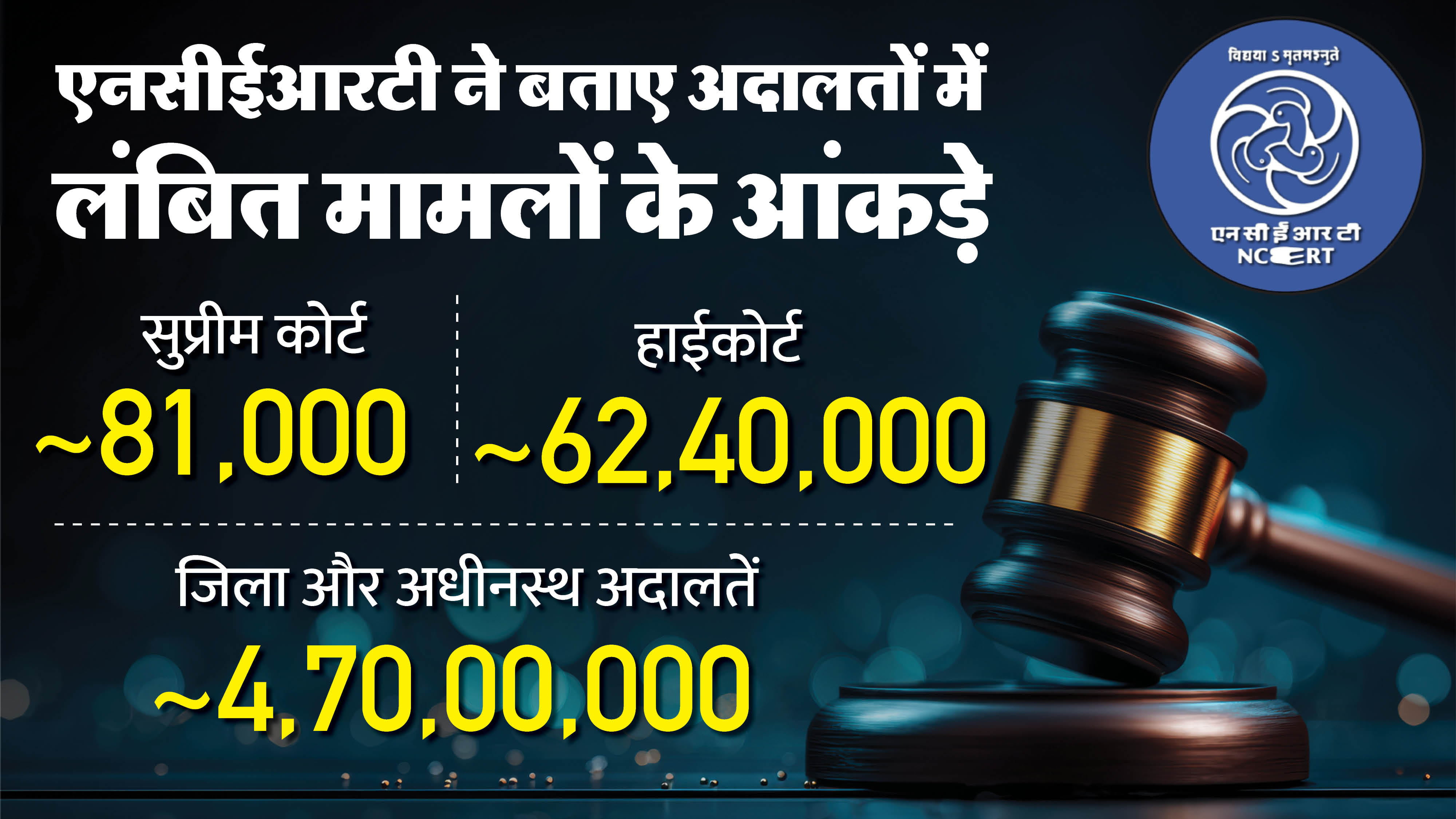 - पाठ्यपुस्तक में लंबित मामलों की गंभीरता को समझाने के लिए भारत की विभिन्न अदालतों के अनुमानित आंकड़े भी दिए गए हैं।