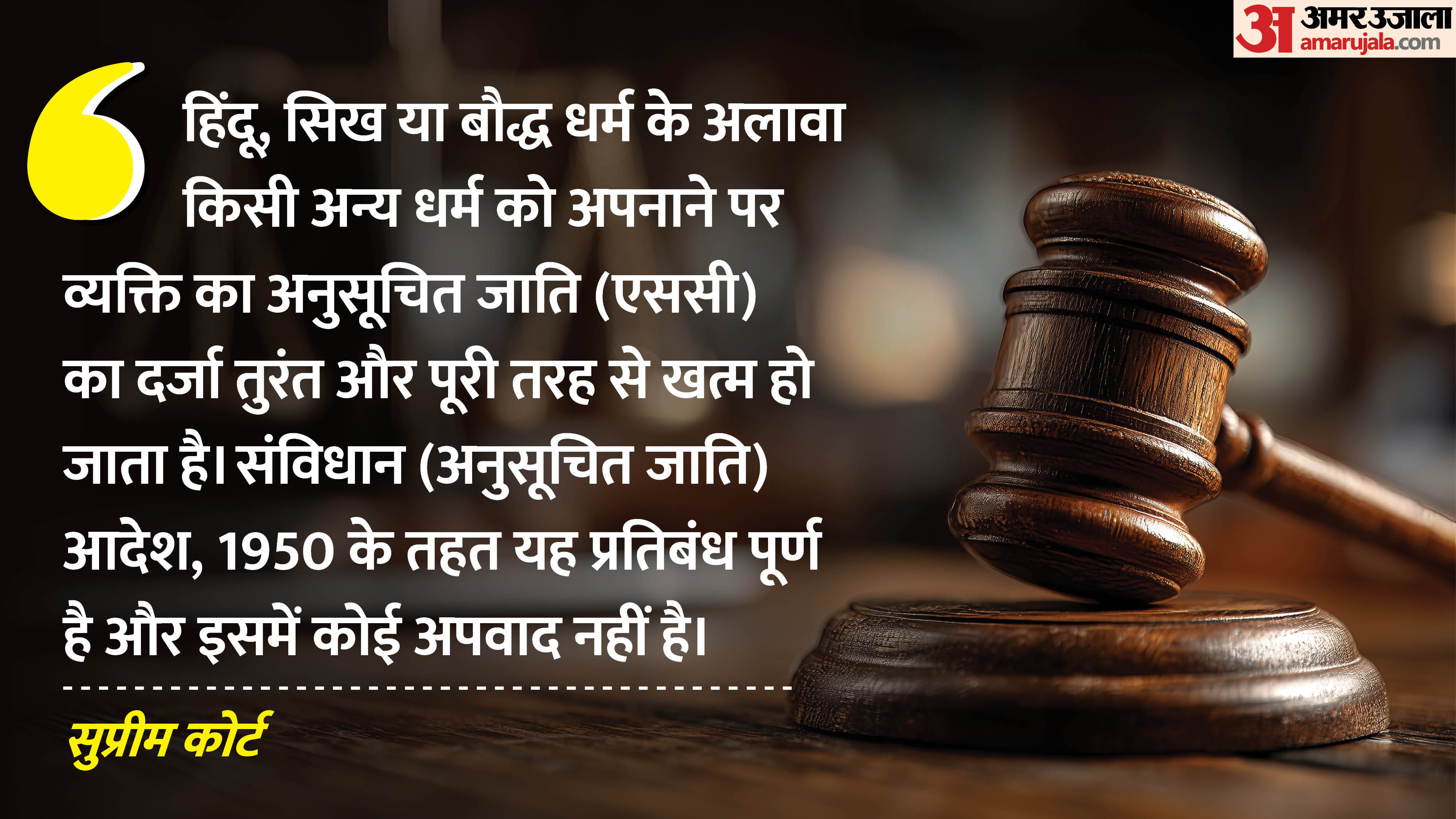 सूसाई बनाम भारत संघ (1986): सुप्रीम कोर्ट ने दशकों पहले 1986 में ही यह स्पष्ट कर दिया था कि अनुसूचित जाति (एससी) समुदाय का कोई व्यक्ति यदि ईसाई धर्म अपना लेता है, तो वह अनुसूचित जाति के लिए बनी योजनाओं और लाभों के लिए पूरी तरह अयोग्य हो जाता है।सी. सेल्वाराणी मामला (2024): सुप्रीम कोर्ट ने एक बहुत ही अहम फैसले में कहा कि ईसाई धर्म अपनाने पर व्यक्ति अपनी मूल जाति खो देता है। अदालत ने कहा कि धर्मांतरण सच्ची आस्था से होना चाहिए। अगर धर्म परिवर्तन केवल आरक्षण का लाभ लेने के लिए किया गया है तो इसे अनुमति नहीं दी जा सकती, क्योंकि यह आरक्षण के सामाजिक उद्देश्य को खत्म करता है। अदालत ने दोहरी पहचान रखने को संविधान के साथ धोखा करार दिया था।