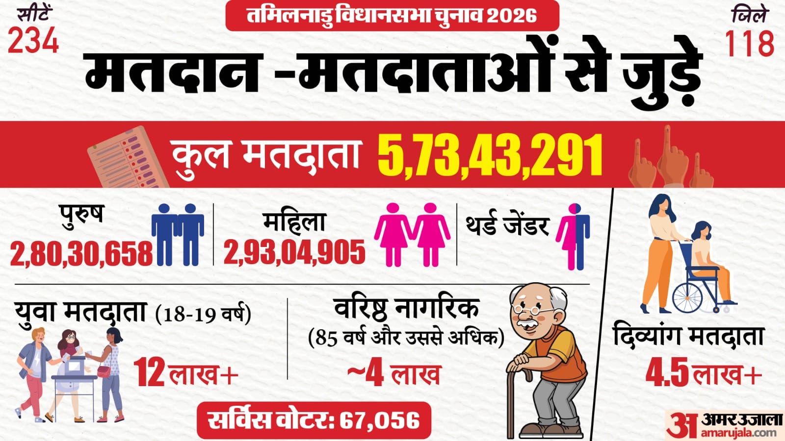 तमिलनाडु विधानसभा चुनाव 2026 के लिए मतदाताओं और मतदान केंद्रों के संदर्भ में चुनाव आयोग की तरफ से विस्तृत आंकड़े और व्यवस्थाएं लागू की गई हैं।