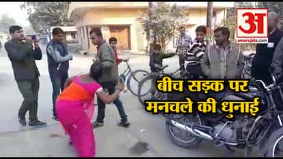 बीच सड़क पर महिला ने सिखाया मनचले को सबक, चप्पलों से की पिटाई