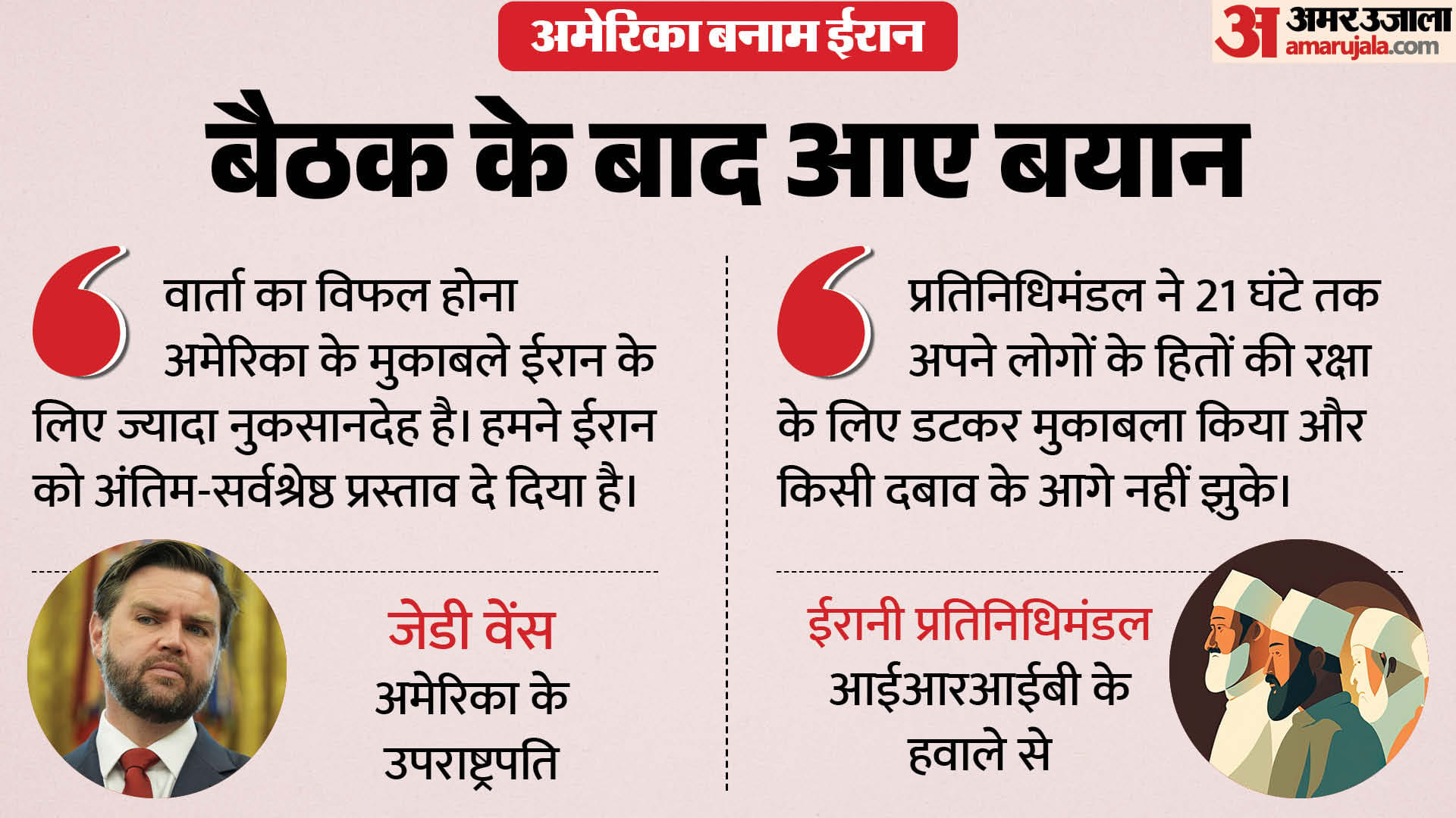 अमेरिका के उपराष्ट्रपति जेडी वेंस ने अमेरिकी प्रस्ताव को अपनी ओर से लचीला और अंतिम व सबसे अच्छा प्रस्ताव बताया था। इसके ठीक उलट ईरानी प्रतिनिधिमंडल और उनके अधिकारियों ने अमेरिका की इन शर्तों को अनुचित और अत्यधिक करार दिया।