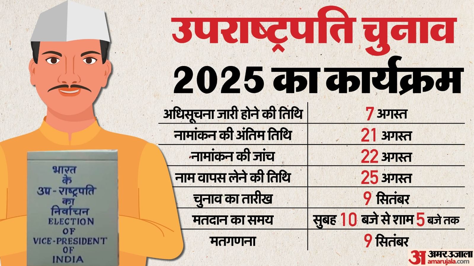 भारत के उपराष्ट्रपति पद के लिए चुनाव की तारीखों का एलान हो गया है। निर्वाचन आयोग (ईसी) ने शुक्रवार को इससे जुड़ी अधिसूचना जारी करते हुए नामांकन से लेकर मतदान की तारीख और समय तक की जानकारी साझा की। गौरतलब है कि जगदीप धनखड़ ने 21 जुलाई को राष्ट्रपति द्रौपदी मुर्मू को अपना इस्तीफा सौंप दिया था। इसके बाद से ही उपराष्ट्रपति पद खाली है।ऐसे में यह जानना अहम है अब उपराष्ट्रपति पद के लिए चुनाव कैसे होगा? चुनाव प्रक्रिया में क्या-क्या होता है? यह चुनाव होता कैसे है? कौन उपराष्ट्रपति का चुनाव लड़ सकता है? उपराष्ट्रपति का चुनाव कितना अलग होता है? इसमें कैसे जीत और हार का फैसला होता है? आइये जानते हैं…