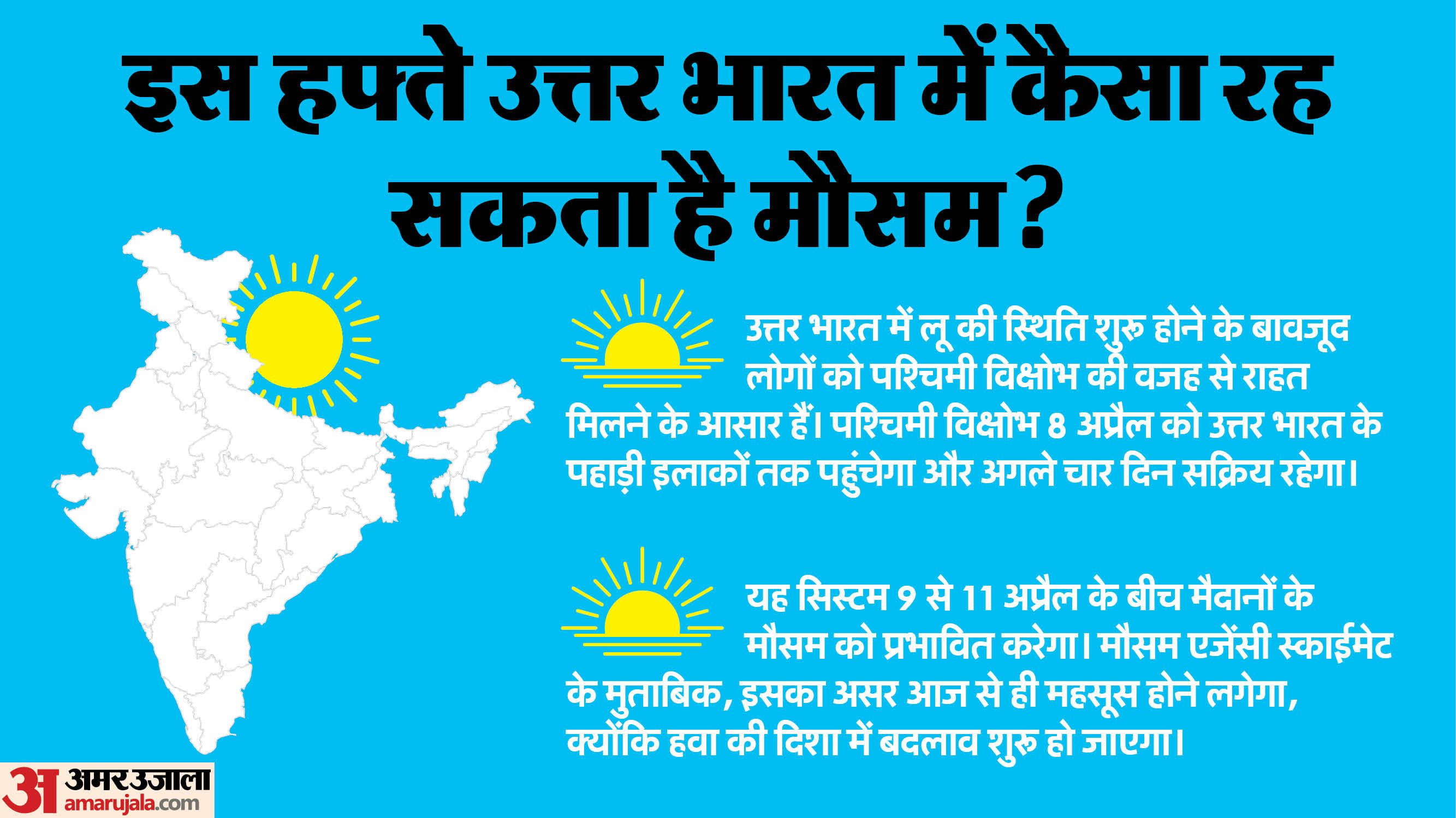 इससे साफ है कि दिल्ली में तापमान आज ही 40°C पार कर सकता है और अगले दो दिन भी इसी तरह तापमान बढ़ता रहेगा। यानी 7 से 9 अप्रैल के बीच हीट वेव की स्थिति बन सकती है। लेकिन पश्चिमी विक्षोभ की वजह से इसके बाद तापमान में गिरावट आ सकती है। 9 से 11 अप्रैल के बीच उत्तर भारत के कुछ क्षेत्रों में हल्की बारिश की भी संभावना है। लेकिन मौसम प्रणाली के गुजर जाने के बाद फिर से तापमान बढ़ सकता है।