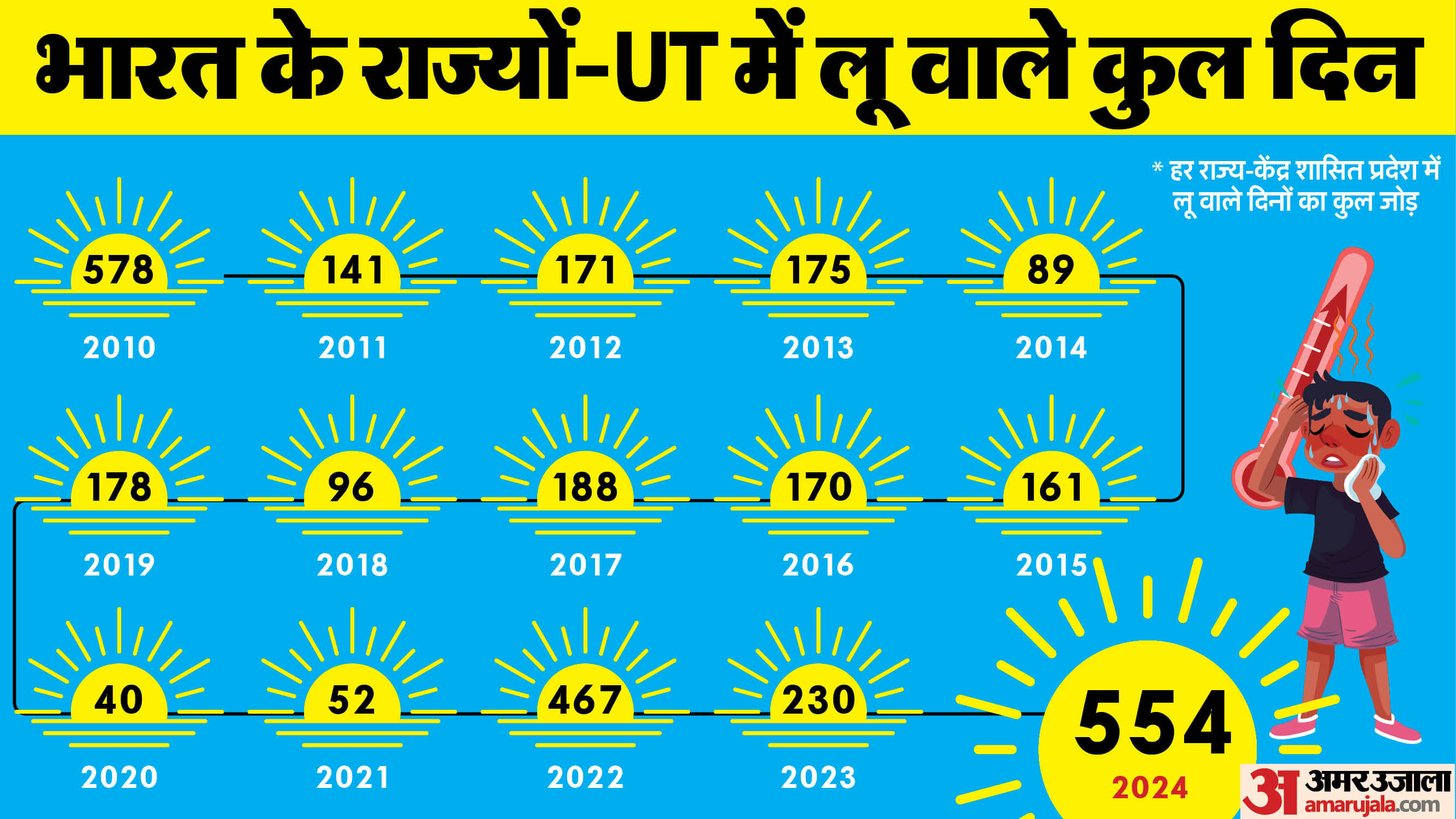 गौरतलब है कि राज्यों में लू वाले दिन स्थान के हिसाब से अलग-अलग रहे हैं। जैसे राजस्थान में गर्मियों के दौरान आमतौर पर आठ से 12 लू वाले दिन दर्ज होते हैं। हालांकि, 2024 में पूर्वी राजस्थान में 23 लू वाले दिन दर्ज हुए थे। वहीं, पश्चिमी राजस्थान में यह संख्या 29 दिन थी। इसी तरह उत्तर प्रदेश में 10-12 दिन लू चलने का अनुमान रहता है। लेकिन बीते साल इनकी संख्या बढ़कर 32 रही थी।