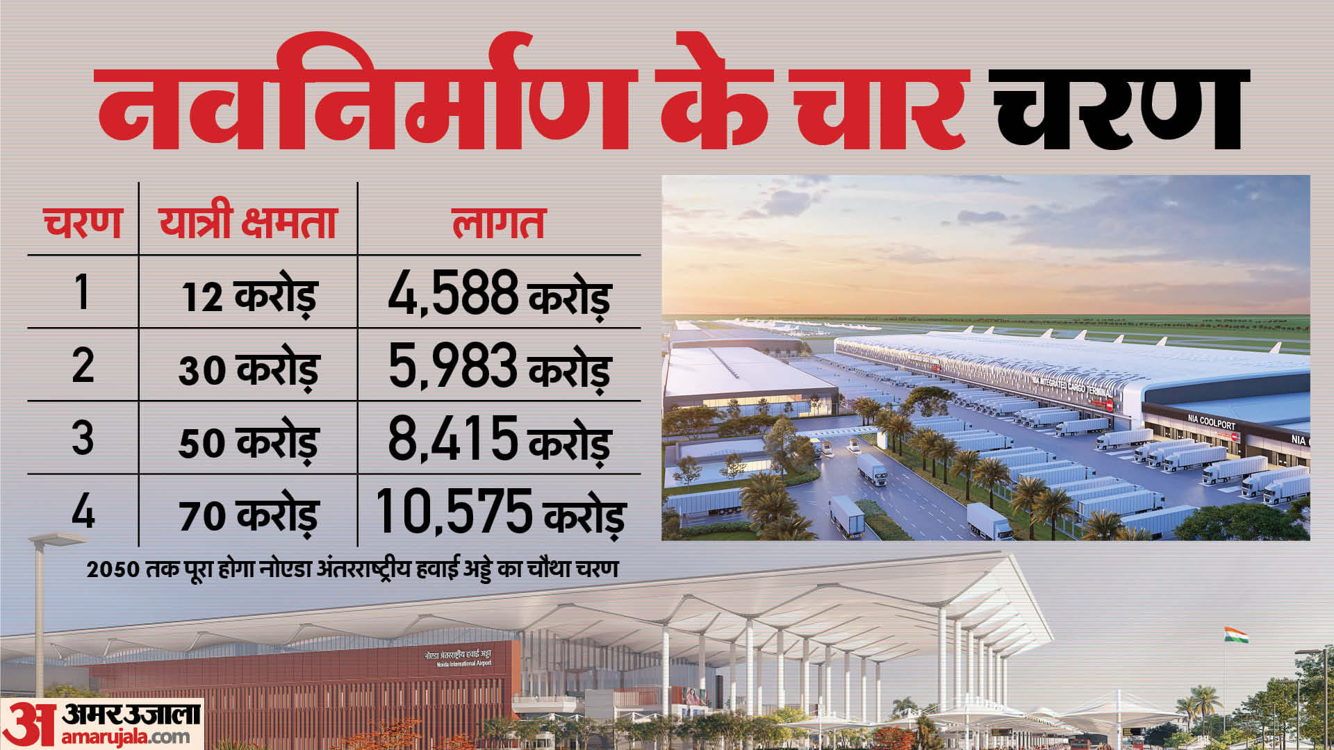इस हवाई अड्डे के पहले चरण का काम पूरा करने की समयसीमा 2024 तक की रखी गई थी। इसके बाद इसे अप्रैल 2025 के अंत तक शुरू करने की योजना बनाई गई थी। हालांकि बाद में 15 मई 2025 तक घरेलू उड़ान संचालन शुरू करने और 25 जून 2025 तक अंतरराष्ट्रीय सेवाएं शुरू करने की बात कही गई। इसके बाद हवाई अड्डे के उद्घाटन की नई तारीख 30 अक्तूबर 2025 रखी गई। तब भी कुछ वजहों से इसका उद्घाटन नहीं हो सका। आखिरकार अब 28 मार्च को इस एयरपोर्ट के पहले चरण का उद्घाटन होने जा रहा है। चार फेज में बनने वाले इस एयरपोर्ट का पूर्ण निर्माण 2050 तक पूरा होना है। पूरी क्षमता के साथ संचालन शुरू होने पर इस एयरपोर्ट की यात्री क्षमता 70 करोड़ तक पहुंच जाएगी।
