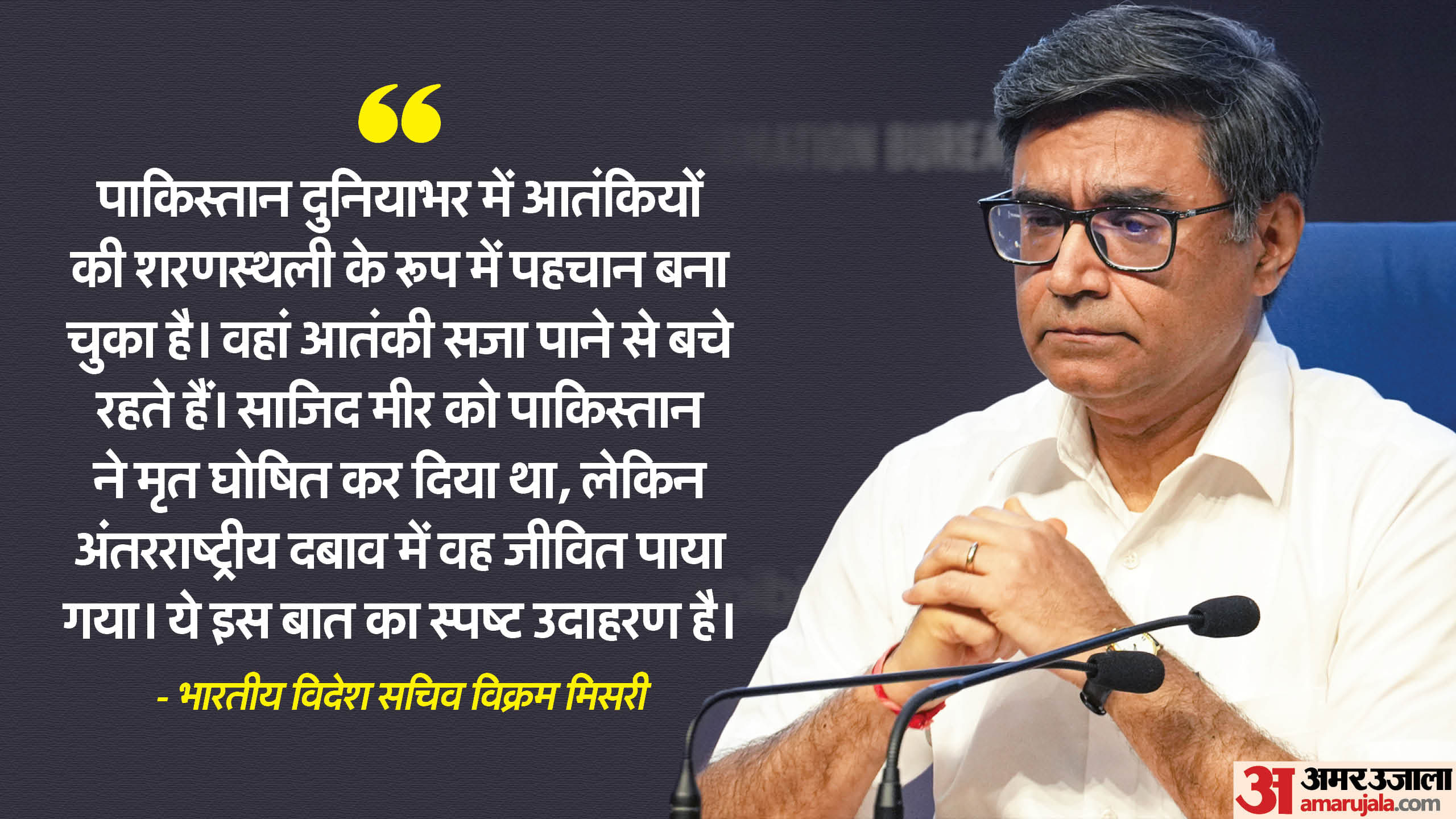 ऑपरेशन सिंदूर के बाद भारतीय विदेश सचिव विक्रम मिसरी और भारतीय सेना की कर्नल सोफिया कुरैशी और विंग कमांडर व्योमिका सिंह ने प्रेस कॉन्फ्रेंस कर ऑपरेशन में बारे में जानकारी दी। इस दौरान विक्रम मिसरी ने कहा कि पाकिस्तान दुनियाभर में आतंकियों की शरणस्थली के रूप में अपनी पहचान बना चुका है। वहां आतंकी सजा पाने से बचे रहते हैं। साजिद मीर को पाकिस्तान ने मृत घोषित कर दिया था, लेकिन अंतरराष्ट्रीय दबाव में वह जीवित पाया गया। आइए जानते हैं कि कौन है साजिद मीर।