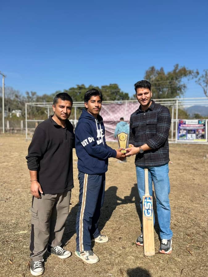 मैन आफ द मैच रहे खिलाड़ी को सम्मानित करते आयोजक।