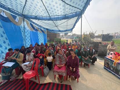 मढ़ीन में प्रशिक्षण सत्र के समापन कार्यक्रम में उपस्थित प्रशिक्षु महिलाएं।