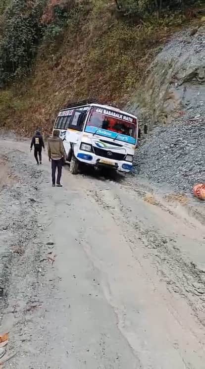 खस्ताहाल बनी-भंडार मार्ग पर यात्रियों को लेकर जाती बस। संवाद