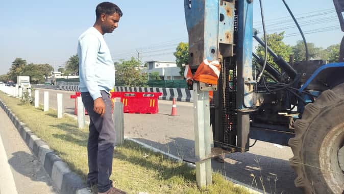 हाईवे के डिवाइडर पर लगाए जा रहे मेटल बीम क्रैश बैरियरसंवाद