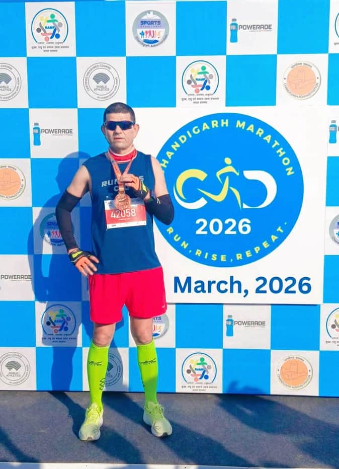चंडीगढ़ में आयोजित मैराथन में जीते गए पदक के साथ सुरेश कुमार। स्रोत स्वयं