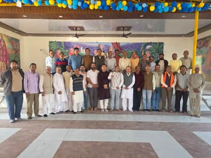 भगवान परशुराम की जयंती पर होने वाले कार्यक्रम की जानकारी देते हीरानगर ब्राह्मण सभा के सदस्य। स्