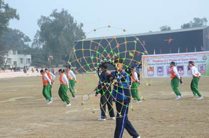 पुलिस माटिर्यस टी 20 क्रिकेट प्रतियोगिता के आगाज पर देशभक्ति से ओत प्रोत प्रस्तुति देते स्कूली