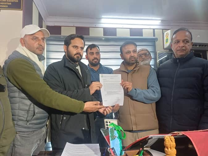 पुंछ में धरना प्रदर्शन के उपरांत एसीआर को ज्ञापन सौंपते प्रदशनकारी।